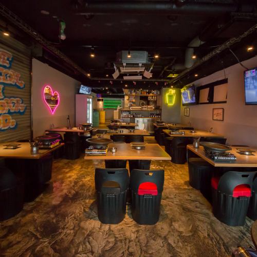 店内装饰有鼓罐桌和霓虹灯,让您仿佛置身于韩国!
